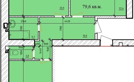 2-к. квартира, 42,4 ;м², 4/5 ;эт. (554798)